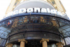 Durante mucho tiempo el edificio era reconocido por la famosa joyería Aleixandre, una de las tantas que existían inicialmente en la Gran Vía, una calle concebida para el lujo. Pero a finales de los setenta, la Gran Vía comenzó a cambiar. La mayoría de las tiendas de lujo cerraron y se trasladaron al barrio de Salamanca. El ambiente que se puede ver hoy en día en este barrio, en calles como Goya y Serrano, es similar al que se vivía en la Gran Vía antes de convertirse en una calle popular para gente de todo tipo, como una pequeña muestra donde se puede reflejar toda la sociedad. En 1981, el famoso local sería ocupado por el primer McDonald’s que se abría en España y que ahora es un punto de encuentro para mucho madrileños.